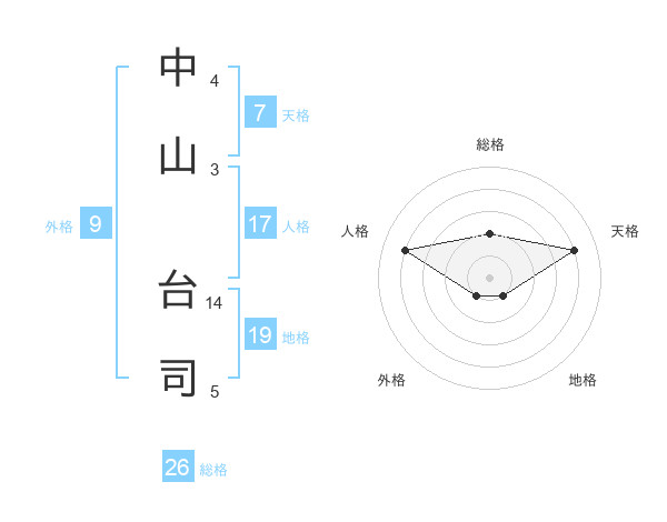 中山 台司さんの総格は26画の2点!