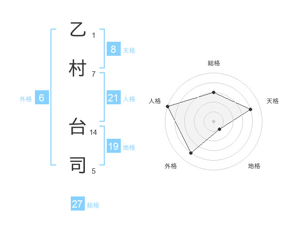 乙村 台司さんの人格は21画の5点!
