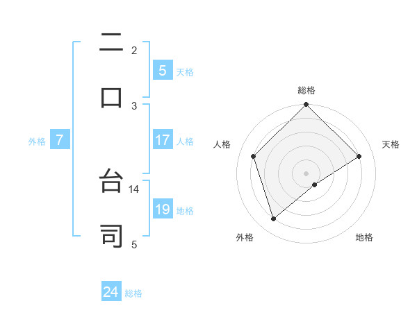 二口 台司さんの天格は5画の4点!