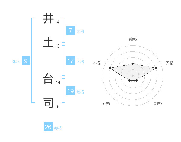 井土 台司さんの総格は26画の2点!