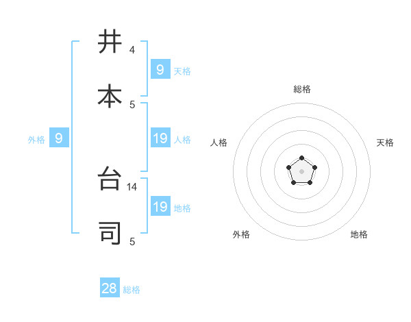 井本 台司さんの総格は28画の1点!