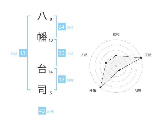 八幡 台司さんの総格は43画の2点!