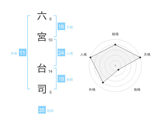 六宮 台司さんの天格は16画の5点!