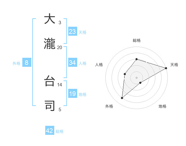 大瀧 台司さんの天格は23画の5点!
