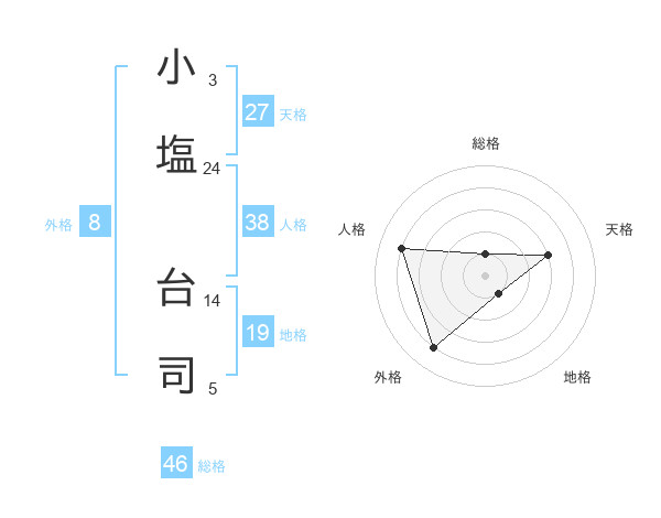 小塩 台司さんの総格は46画の1点!