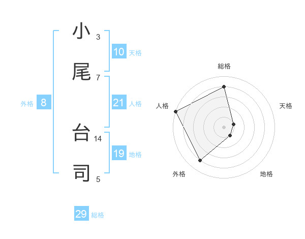 小尾 台司さんの総格は29画の4点!