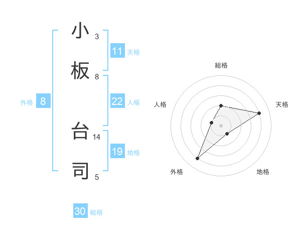 小板 台司さんの総格は30画の2点!