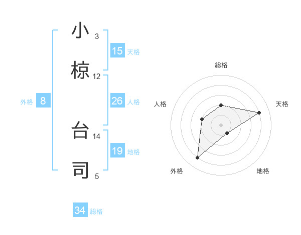 小椋 台司さんの総格は34画の2点!