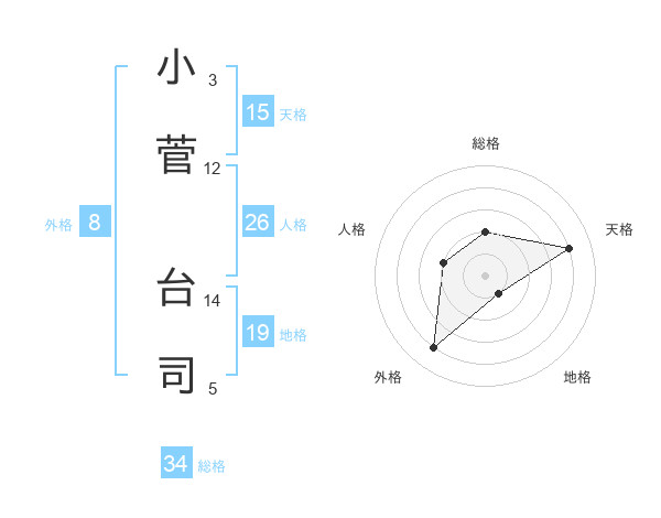 小菅 台司さんの天格は15画の4点!