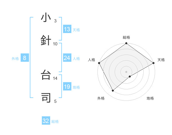 小針 台司さんの総格は32画の5点!