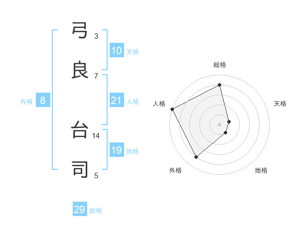 弓良 台司さんの人格は21画の5点!
