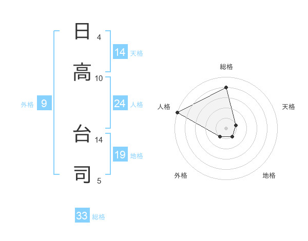 日高 台司さんの総格は33画の4点!