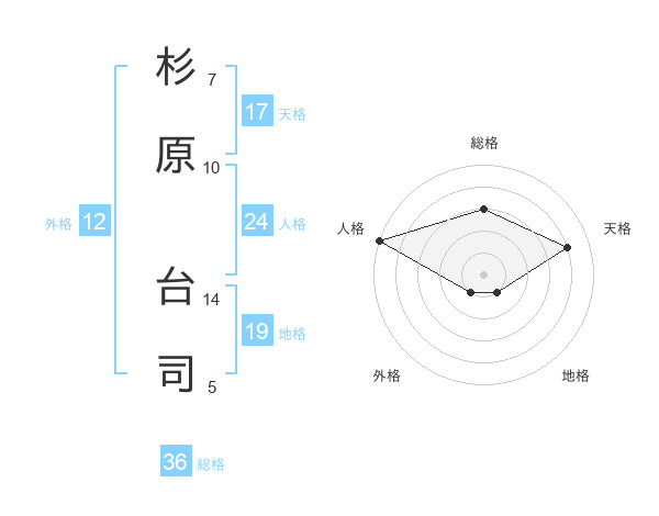 杉原 台司さんの天格は17画の4点!