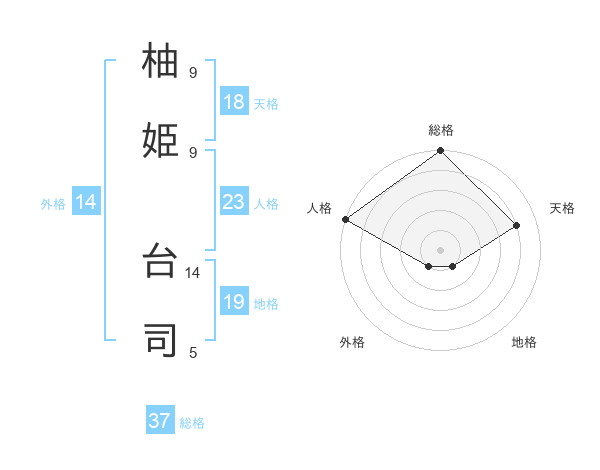 柚姫 台司さんの総格は37画の5点!