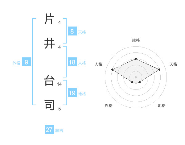 片井 台司さんの総格は27画の3点!