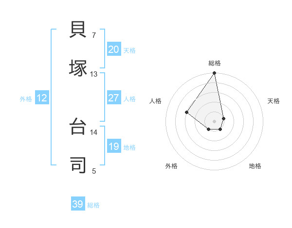 貝塚 台司さんを姓名の画数から五運を鑑定