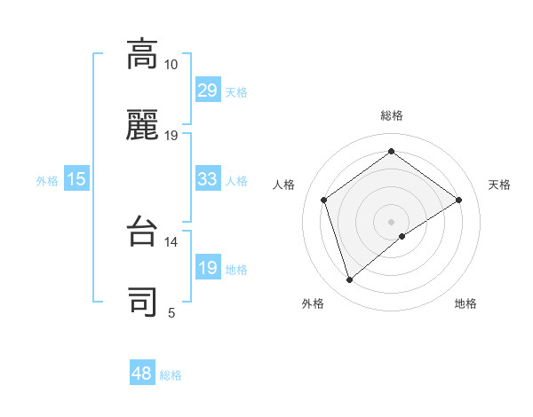 高麗 台司さんの総格は48画の4点!