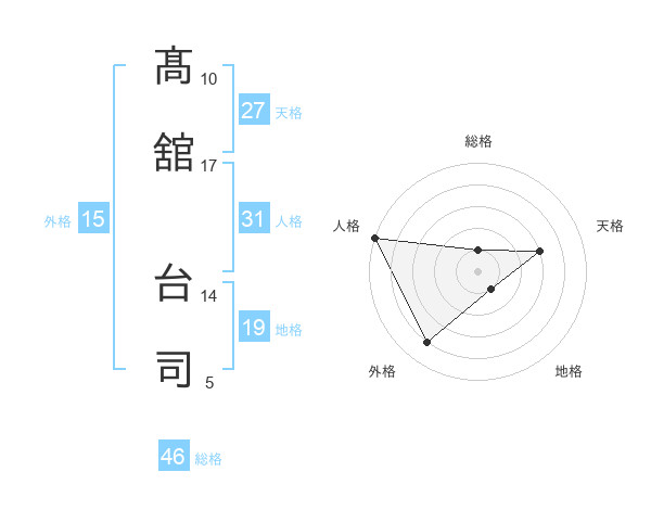 髙舘 台司さんの総格は46画の1点!
