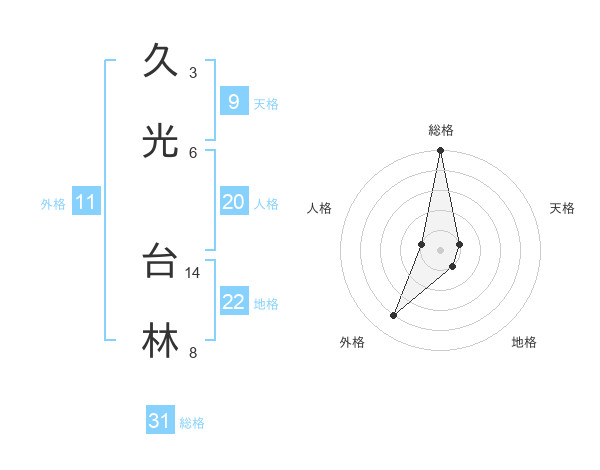 久光 台林さんの総格は31画の5点!