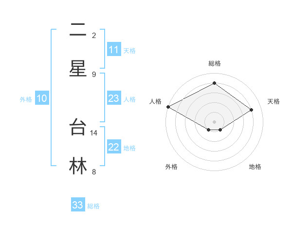 二星 台林さんの総格は33画の4点!