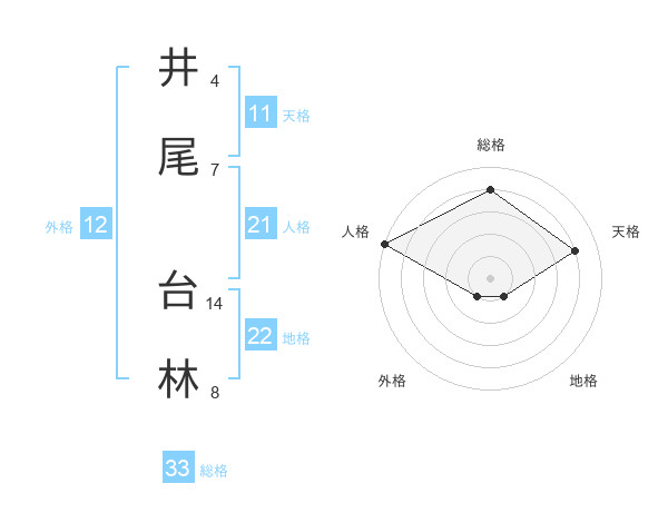 井尾 台林さんの総格は33画の4点!