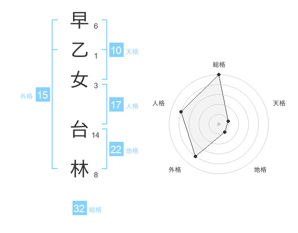 早乙女 台林さんを姓名の画数から五運を鑑定