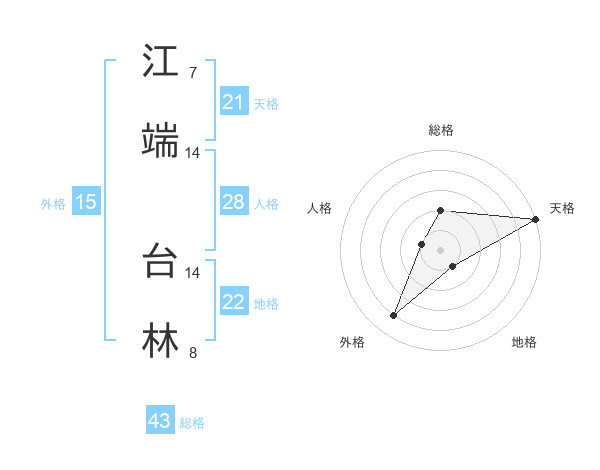 江端 台林さんの外格は15画の4点!