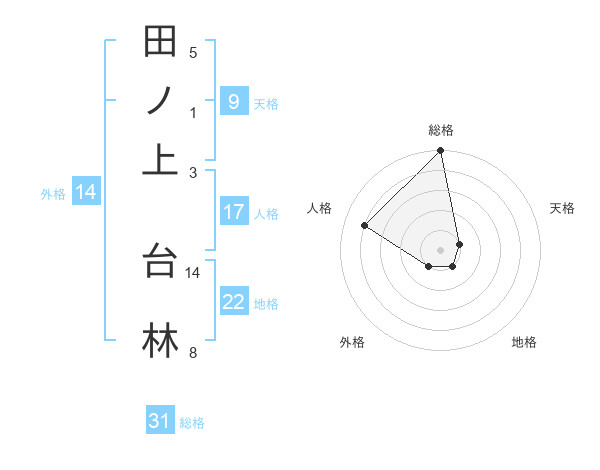 田ノ上 台林さんの総格は31画の5点!