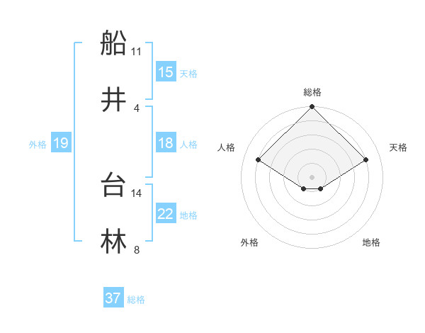 船井 台林さんの総格は37画の5点!