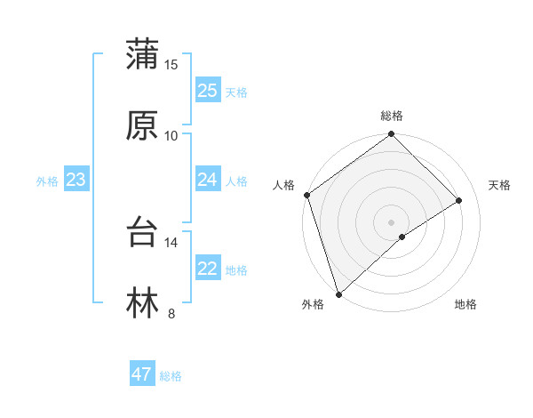 蒲原 台林さんの外格は23画の5点!