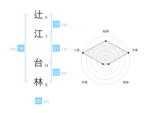 辻江 台林さんの総格は35画の4点!