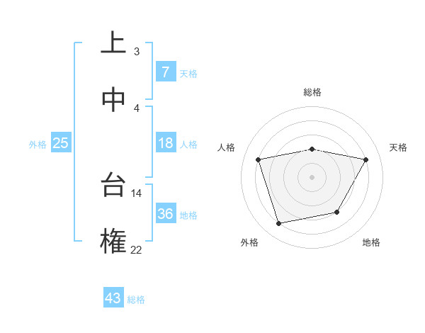 上中 台権さんの総格は43画の2点!