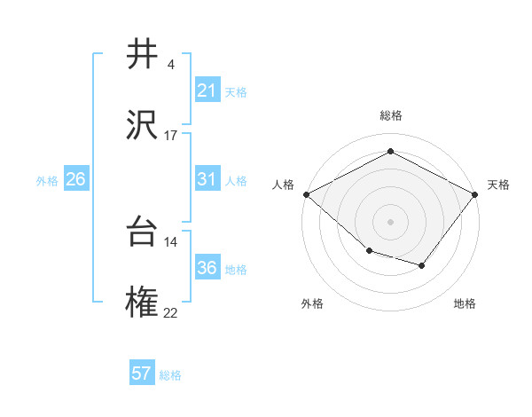 井沢 台権さんの総格は57画の4点!