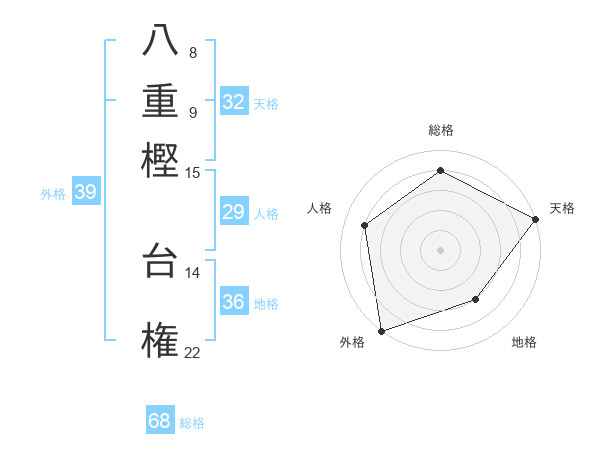 八重樫 台権さんを姓名の画数から五運を鑑定