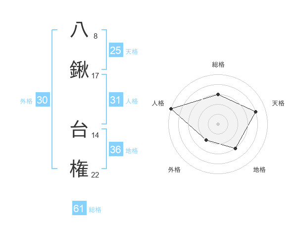 八鍬 台権さんの人格は31画の5点!