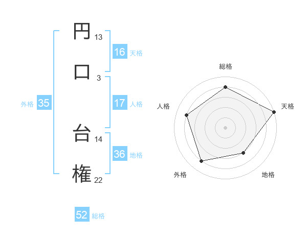 円口 台権さんの総格は52画の4点!