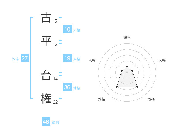 古平 台権さんの総格は46画の1点!