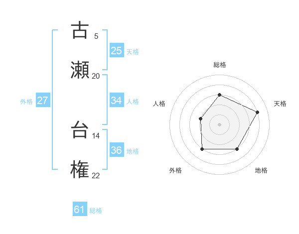古瀬 台権さんの総格は61画の3点!