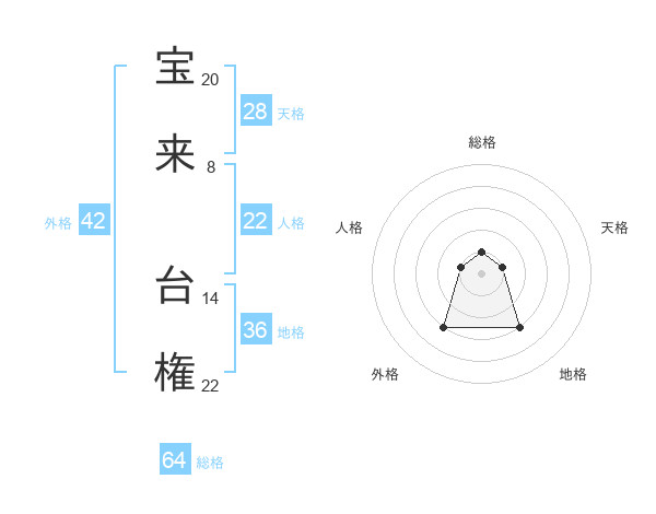 宝来 台権さんの総格は64画の1点!