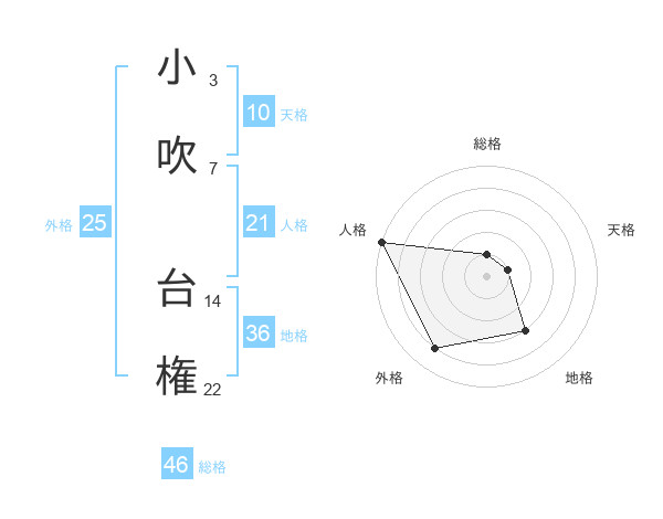 小吹 台権さんの人格は21画の5点!