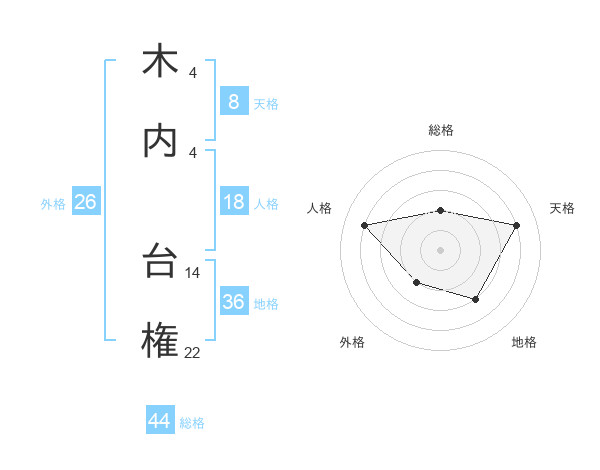 木内 台権さんの総格は44画の2点!