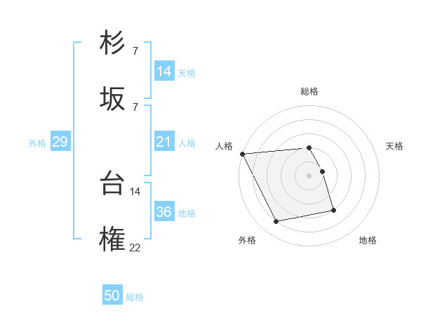 杉坂 台権さんの総格は50画の2点!