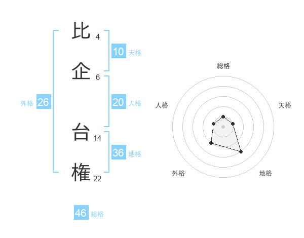 比企 台権さんの総格は46画の1点!