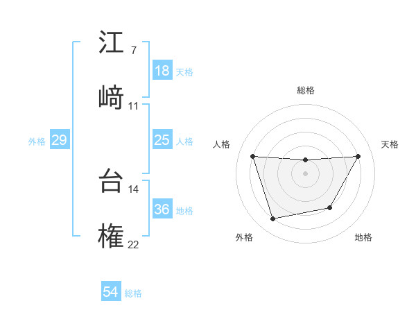江﨑 台権さんを姓名の画数から五運を鑑定