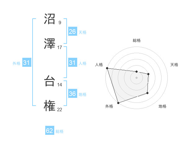 沼澤 台権さんを姓名の画数から五運を鑑定