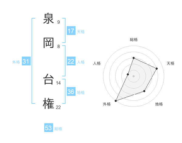 泉岡 台権さんを姓名の画数から五運を鑑定