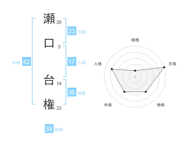 瀬口 台権さんの総格は59画の1点!