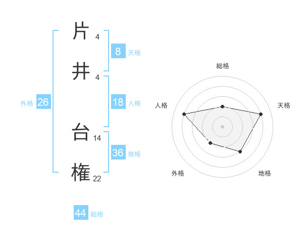 片井 台権さんの総格は44画の2点!