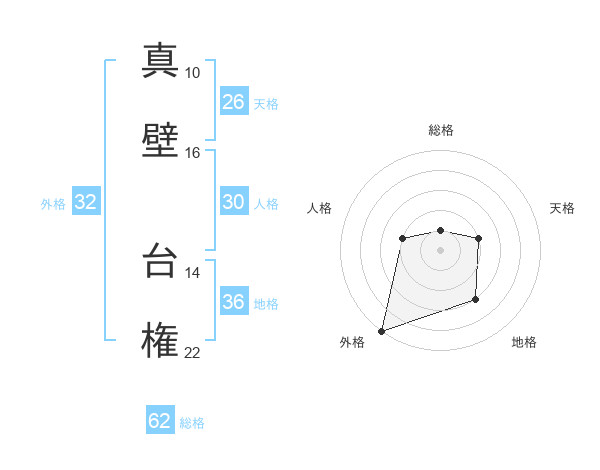真壁 台権さんの外格は32画の5点!