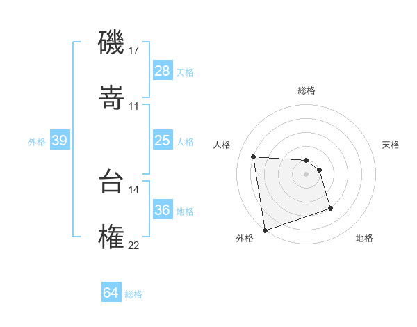 磯嵜 台権さんの総格は64画の1点!